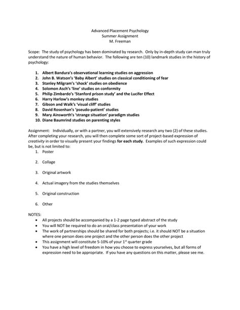Download advanced placement psychology summer assignment worth Doc online is a convenient and frugal way to read advanced placement psychology summer assignment worth you love right from the comfort of your own home. Yes, there sites where you can get Doc "for free" but the ones listed below are clean from viruses and completely legal to use.